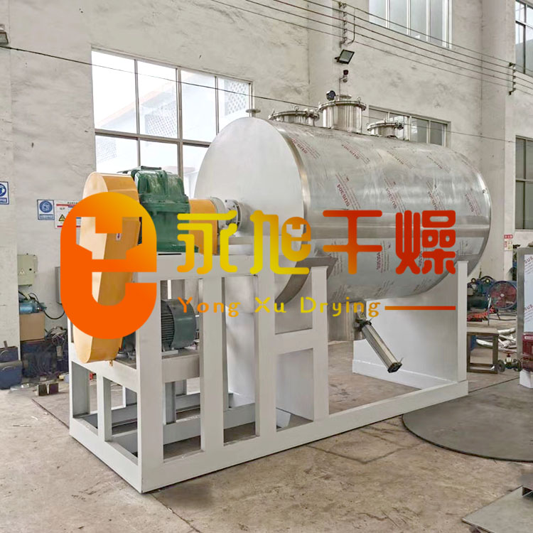 本机是一种新颖卧式间歇式真空干燥设备,湿物料经传导蒸发,带有刮板搅拌器不断清除热面上的物料,并在容器内推移形成循环流,水份蒸发后由真空泵抽出。